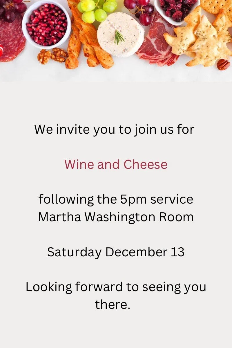 Wine & Cheese Nov 20 Written By Communications Coordinator Join us for the next Wine & Cheese event on Saturday, December 13. All are welcome. Communications Coordinator