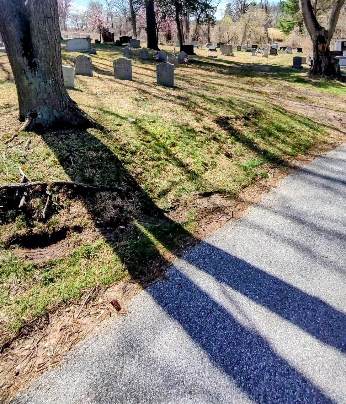 Location: West of the Burk marker is a large standing marker with the name “GARNER”. To its right is a white, upright marker, “Allerton”. 16 paces behind that are the three D’Ascenzo graves.